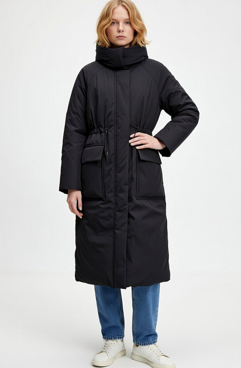 Designed to provide sumptuous warmth while beautifully contouring the silhouette, it effortlessly captures the essence of feminine grace and softness.